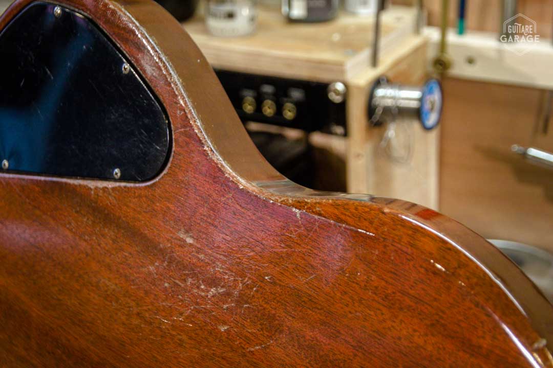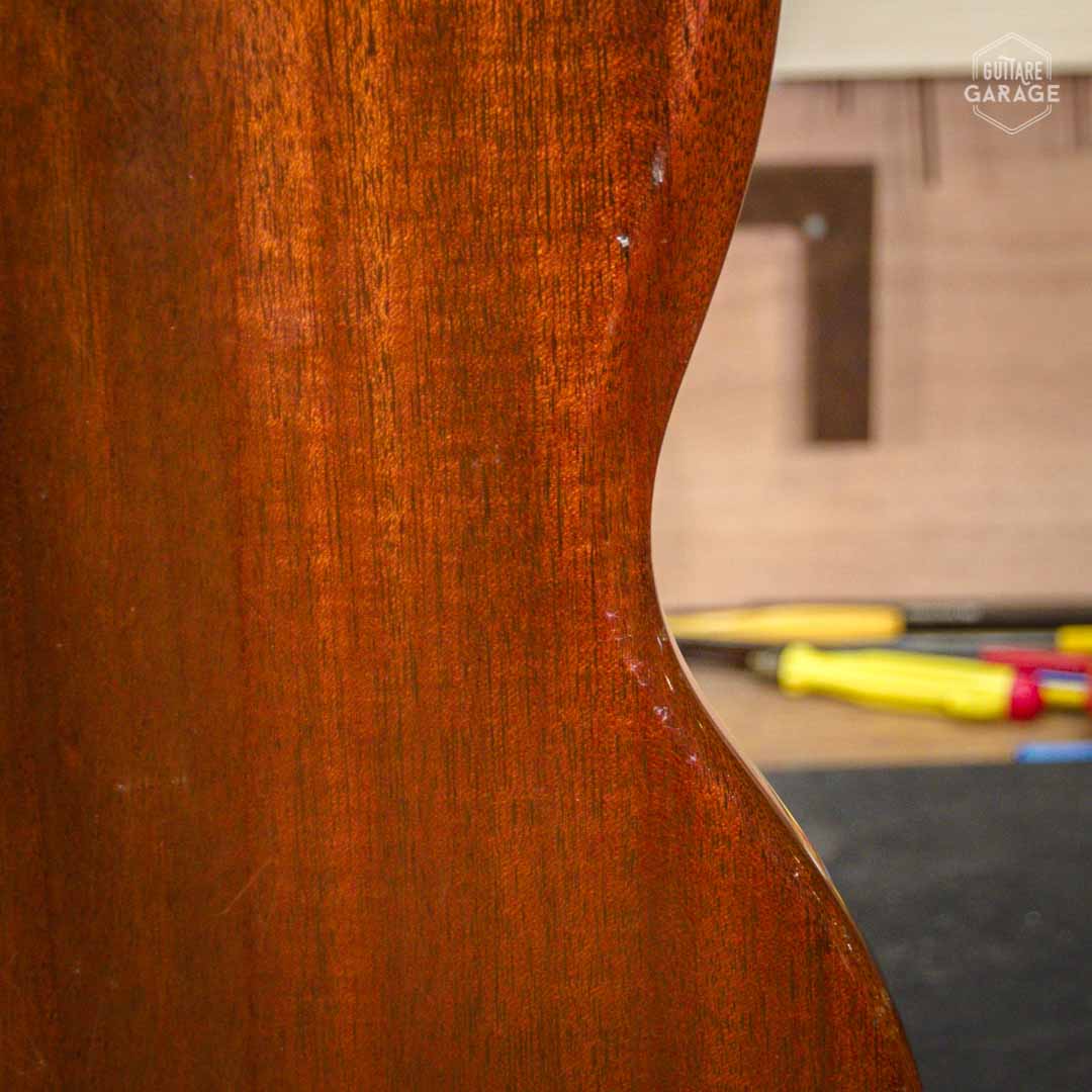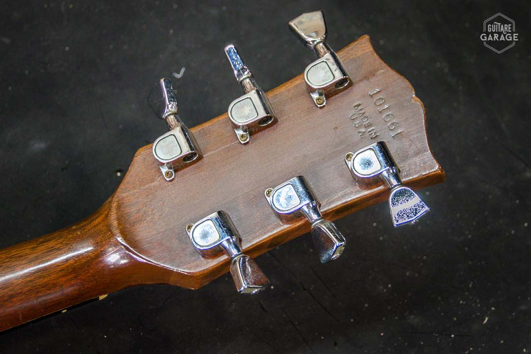 Etat général : la guitare est trés bon état de conservation avec une patine naturelle due à son grand âge. La guitare a eu une réparation légère (collage d’une fissure à l’arrière de la tête au niveau des mécaniques). L’électronique fonctionne parfaitement. Les frettes sont en excellent état et proposent une action basse et un manche très confortable. Toutes les pièces sont d’origine.