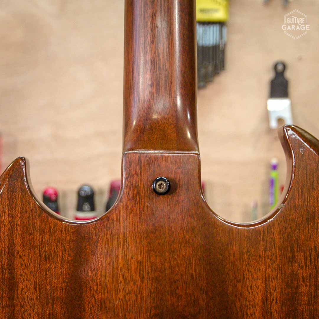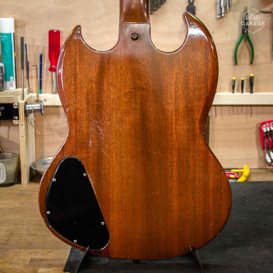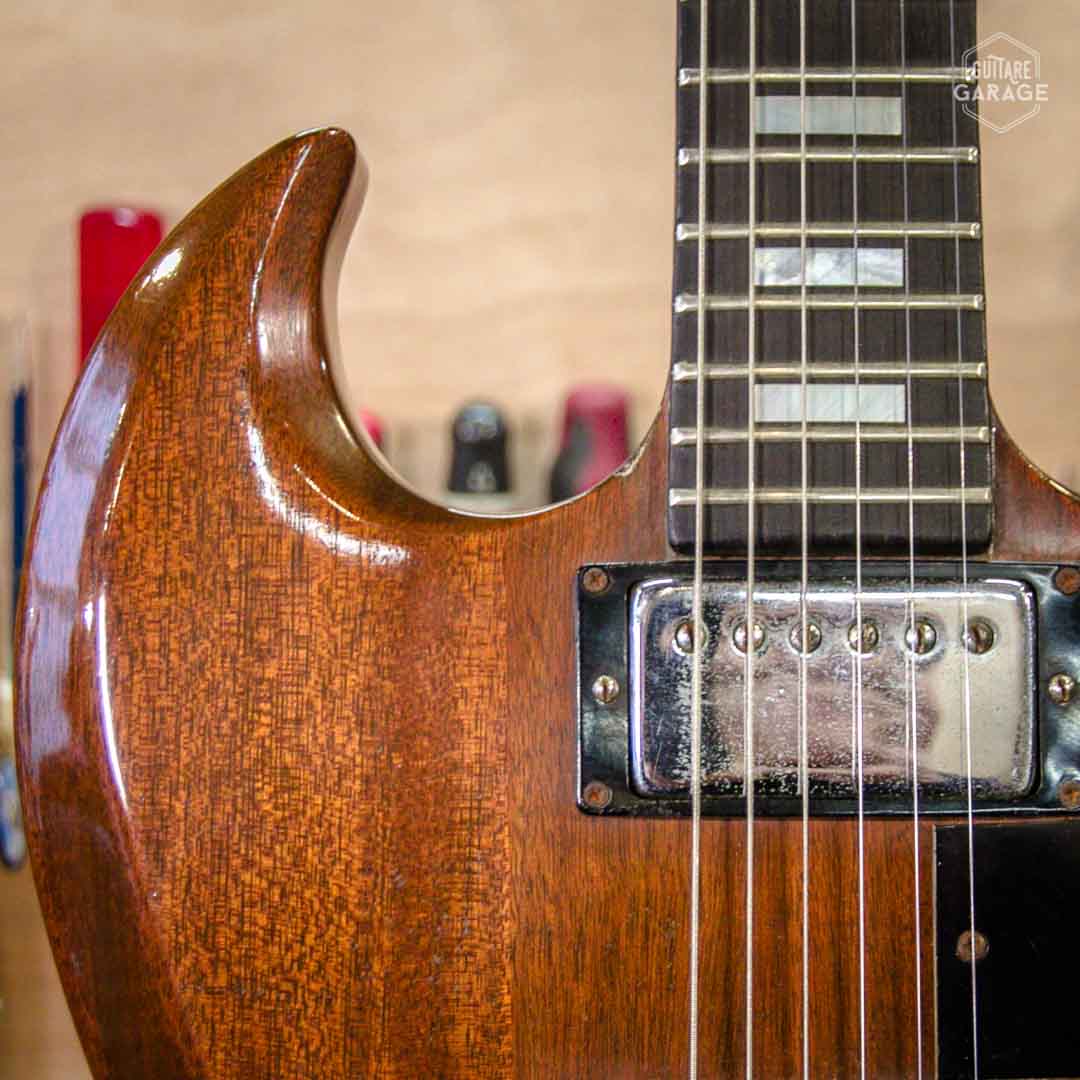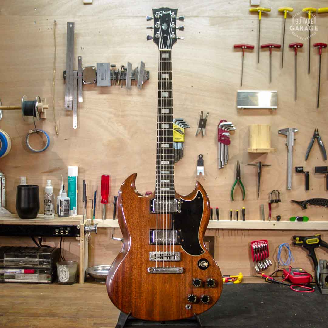 Cette Occasion du Garage est une élégante et rare Gibson SG Standard de la « Norlin era » en finition walnut. Cette guitare légère et résonnante est en très bon état de conservation et offre une belle patine naturelle qui ajoute à son charme. Les micros « tarback » délivrent moins de niveau et plus de finesse que les PAF de la marque et sont caractéristiques de cette période.