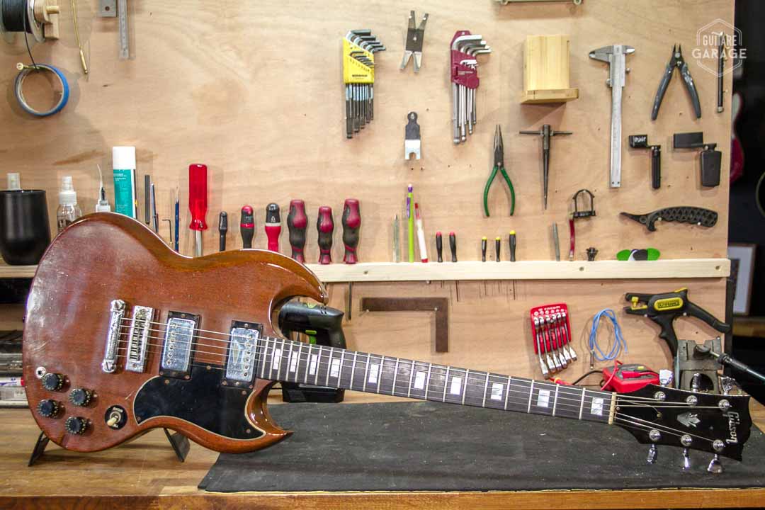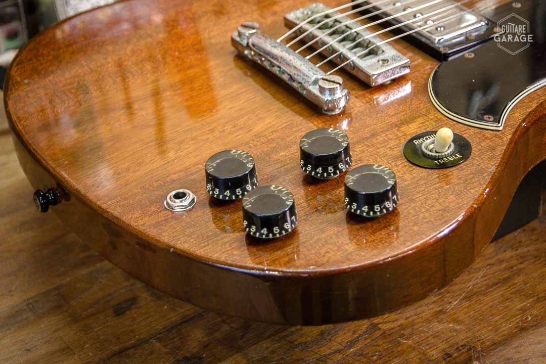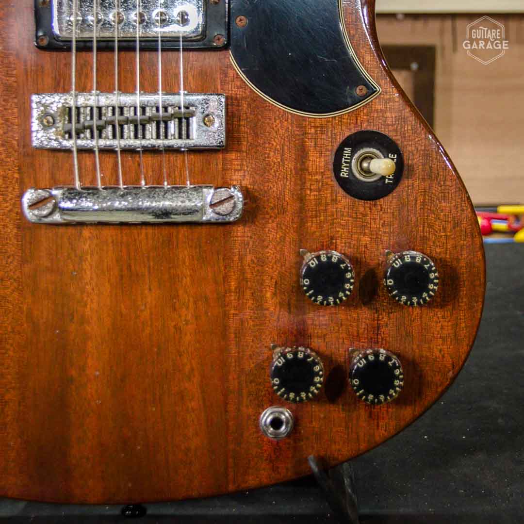 - Electronique : un volume par micro, un tone par micro, un sélecteur 3 positions. Toute l’electronique est d’origine.