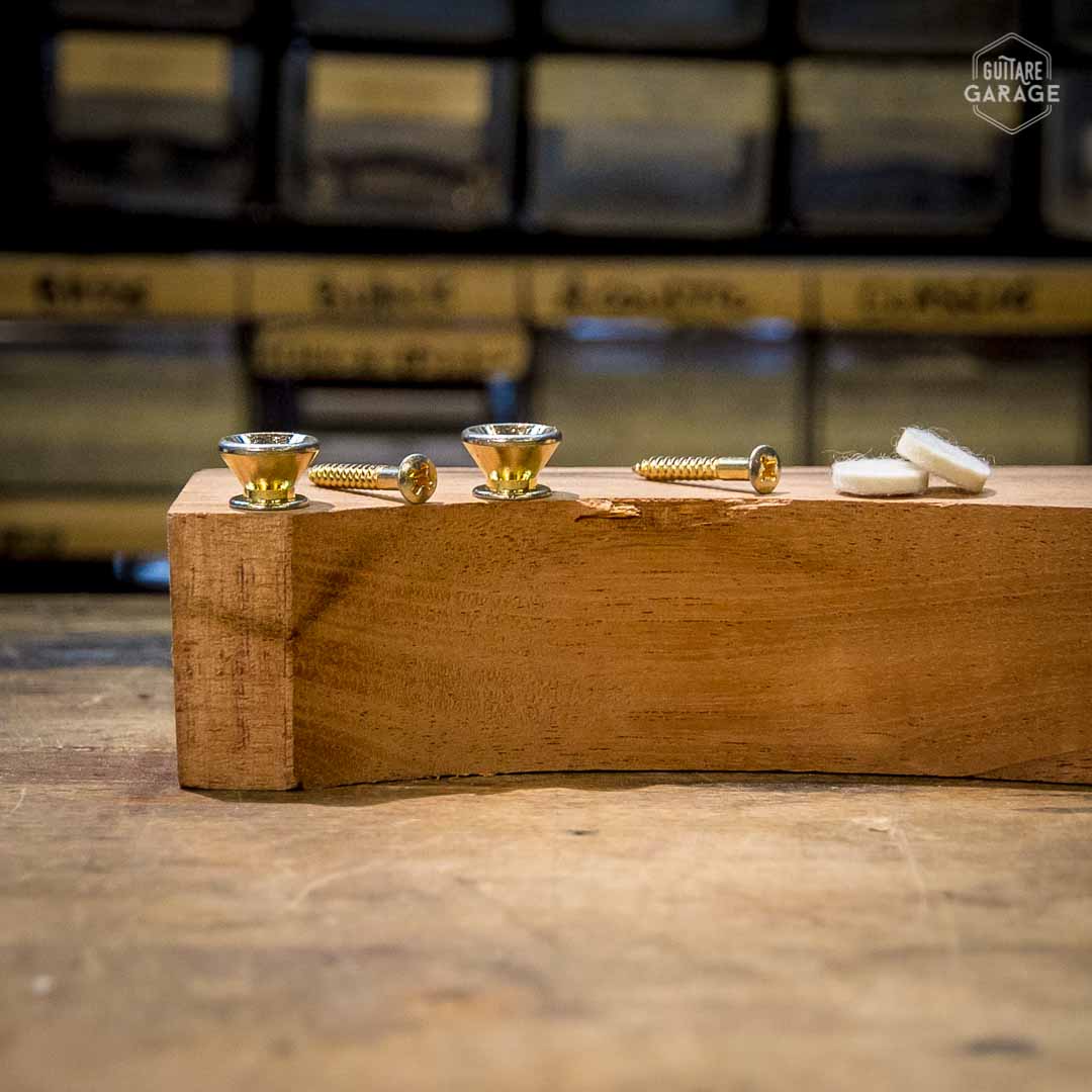 Paire d’attache sangle (strap button) reliquée par nos luthiers avec les spécifications suivantes :